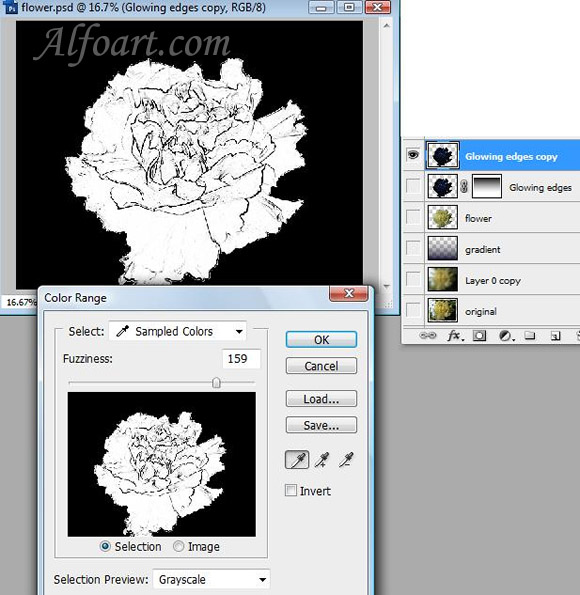 - Go to Select > Color Range and choose dark color, click Ok.