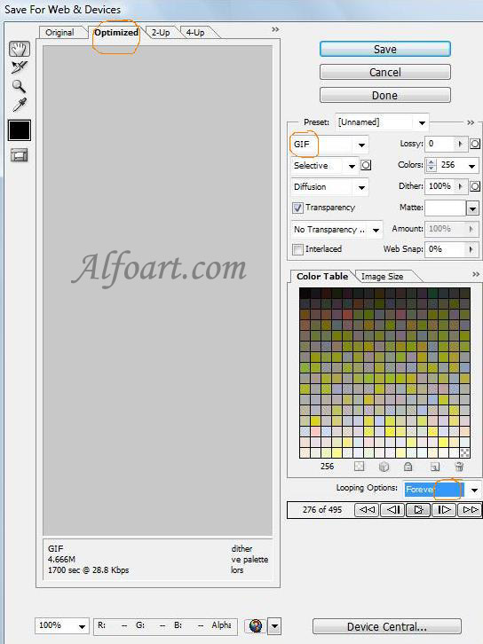 Optimization settings for GIF.