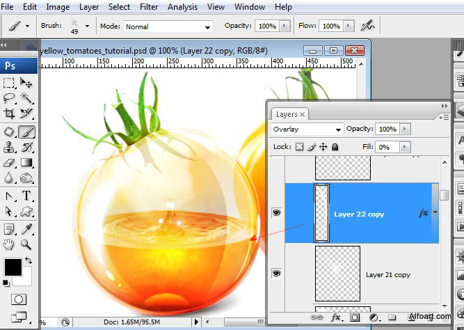 - Apply Screen Blending Mode to it and erase area outside tomato shape.