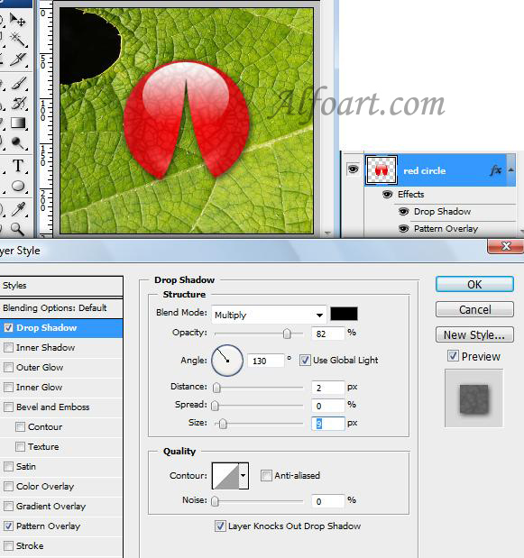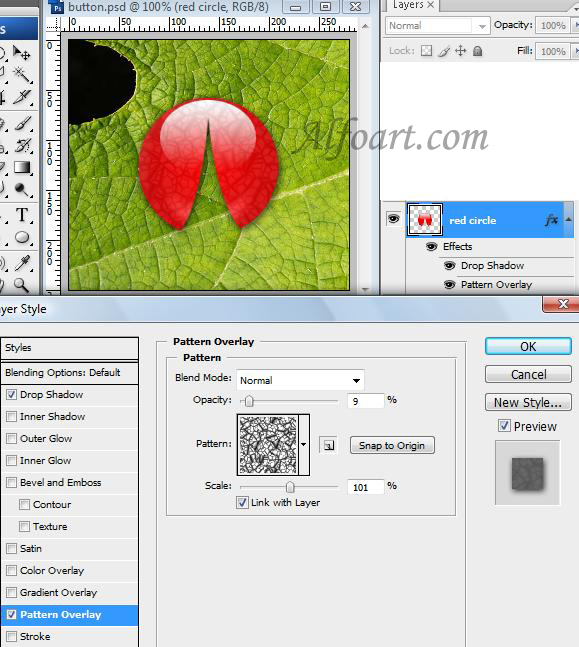 - Add additional adjustments for Layer style (Drop Shadow and Pattern (Metal Landscape-Patterns)):
