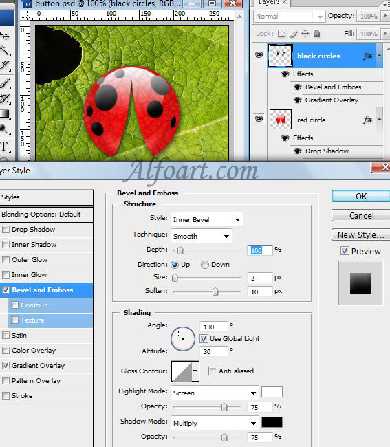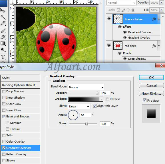 | You may get .psd* file of "Ladybug" Photoshop tutorial by making a payment. Put the tutorial title in "Add special instructions to seller" line of PayPal and it will be sent to you shortly. |