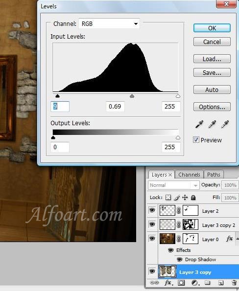 - Change adjustments in Levels just like in the example below.