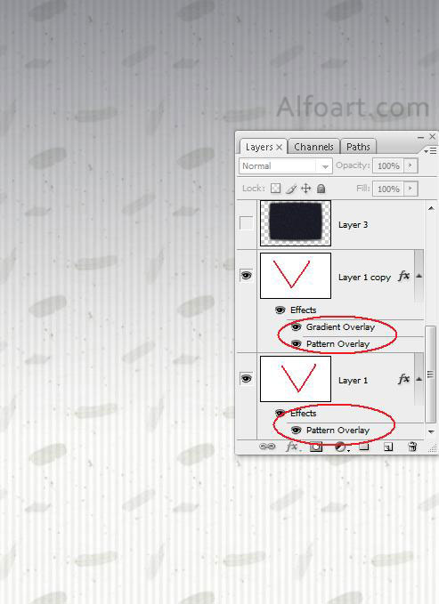 - Apply Leaf pattern and linear Gradient Overlay to second layer.