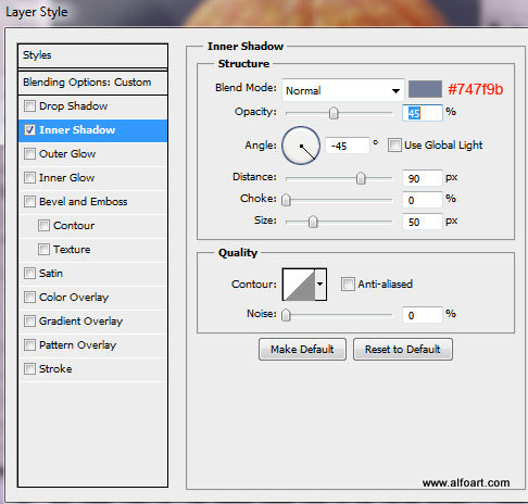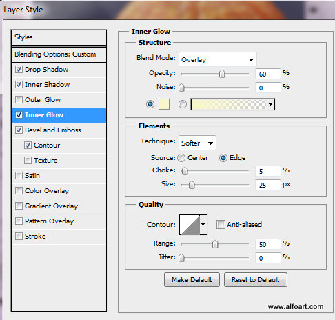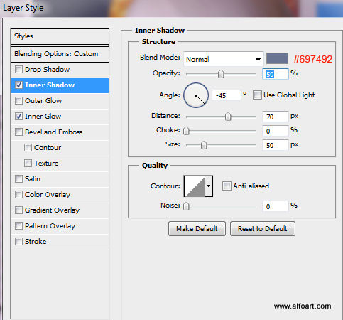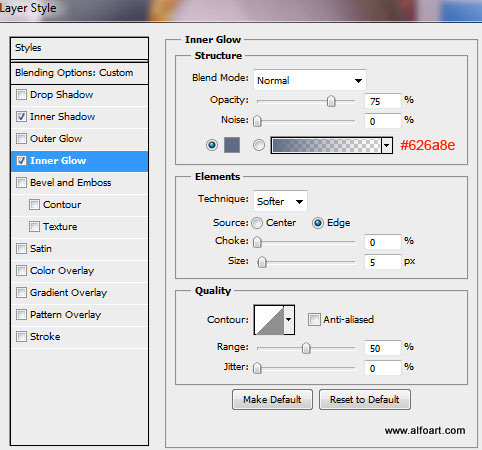 - Set Fill = 0% and apply only "Inner Shadow" effect to this layer to create background reflection: