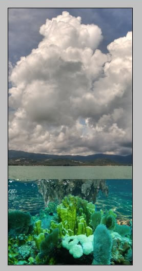 - Make visible third wave layer duplicate. Erase area around surface part of water just like in the previous step. Apply Screen Blending mode for this layer.