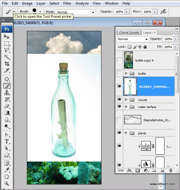 | You may get .psd* file of "Message in a bottle" Photoshop tutorial by making a payment. Put the tutorial title in "Add special instructions to seller" line of PayPal and it will be sent to you shortly. |