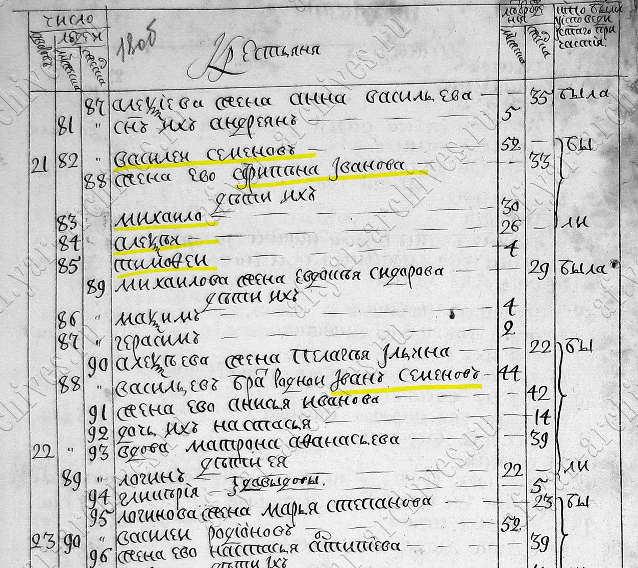 | Children: Тимофей, Алексей, Семен Васильев | ||